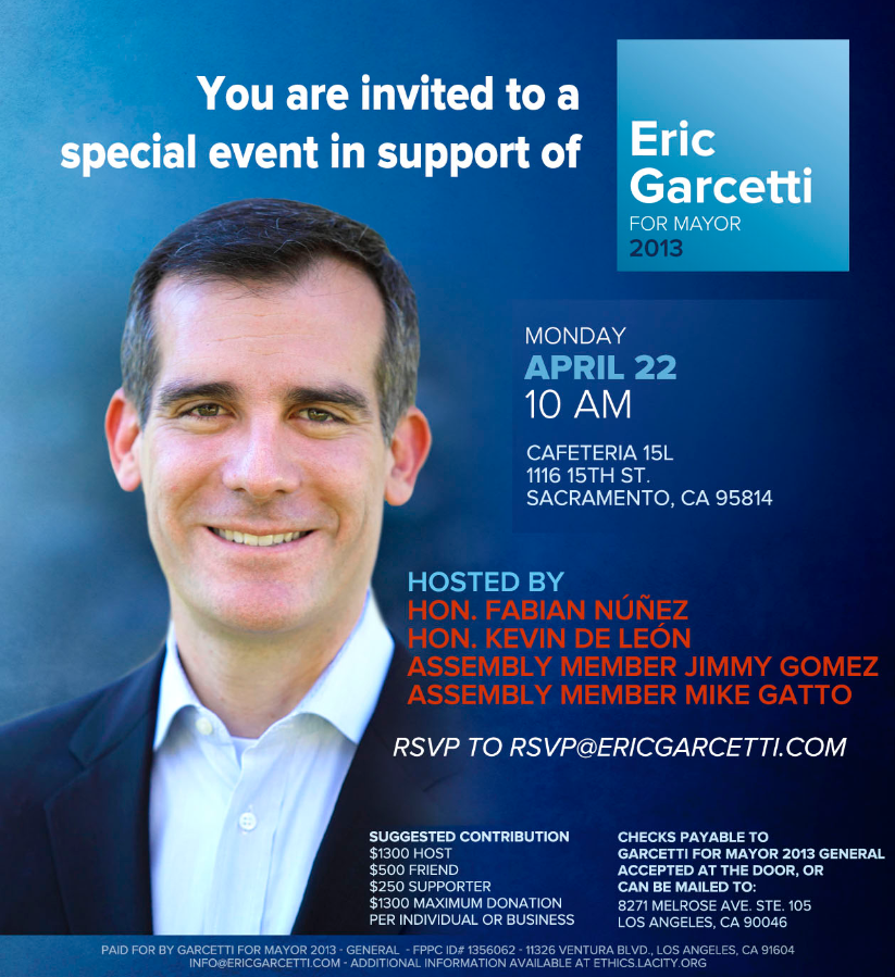 A connection to Sacramento, other than an apparent desire to net some campaign contributions from the interest groups with business at the Capitol, is not mentioned.