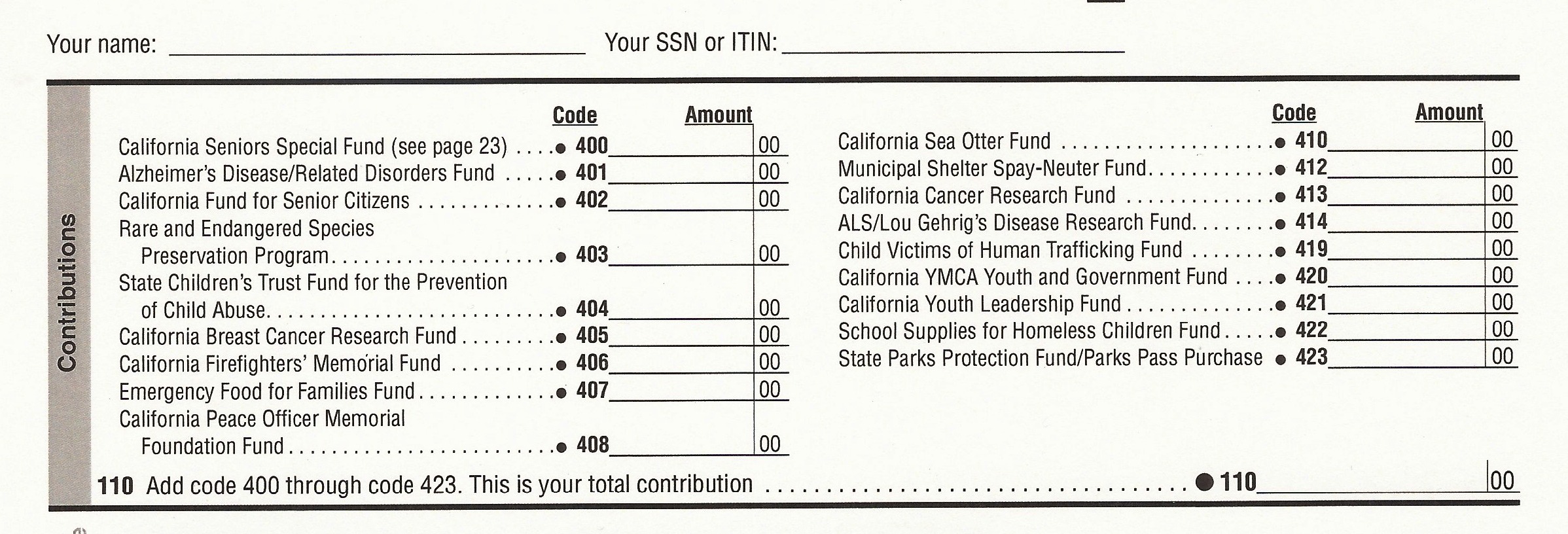 The 18 current check-offs can be found at the top of Page 3 of California’s 540 tax forms.